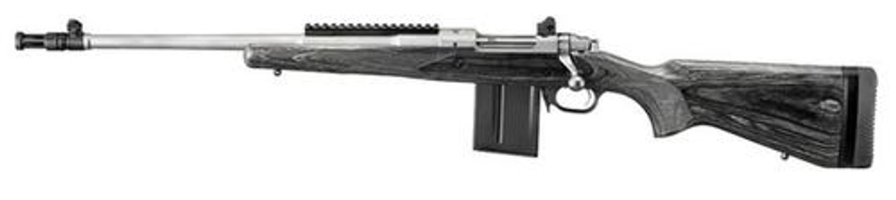 Ruger’s Gunsite Scout Rifle is developed with Gunsite, and is “Gunsite Approved” and features the Gunsite name rollmarked on the receiver. It has a forward-mounted Picatinny rail which allows for the mounting of modern optics and a built-in, accurate sighting system with ghost ring adjustable rear aperture sight and a non-glare, blade front sight. Patented integral scope mounts, are machined directly on the solid-steel receiver which provides a stable mounting surface. The non-rotating, Mauser-type controlled round feed extractor features a fixed blade-type ejector that positively ejects the empty cases as the bolt is moved fully rearward. The Gunsite Scout Rifle also has a free-floated, cold hammer-forged barrel with ultra-precise rifling, three-position safety, sling swivel studs, detachable box magazine with push-forward magazine release, and a soft rubber buttpad with buttpad spacers. Included are scope rings and three .5″ spacers.