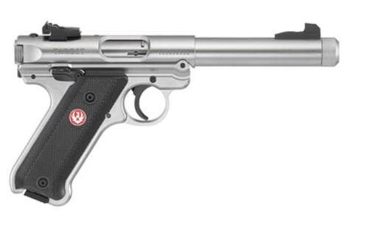 Ruger Mark IV Target, 22LR, 5.5″, 10rd, Stainless Steel, Adjustable Rear Sight, Checkered Grip