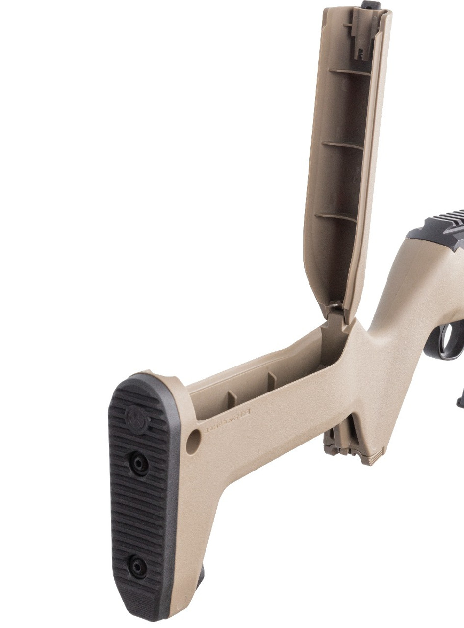 ‘-Interchangeable magazine wells for use of common Ruger and Glock magazines. Ships with Ruger magazine well installed and an additional magazine well accepting Glock magazines is included. Ruger American Pistol magazine wells are available at ShopRuger.com.