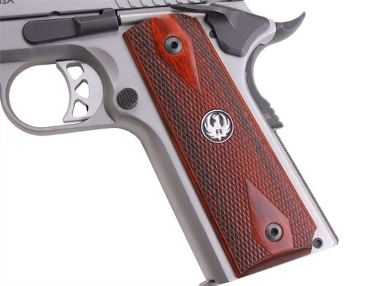 Original 1911 Series 70 design. Hardwood grips and checkered backstrap. CNC machined. Stainless steel barrel and bushing are produced from the same bar stock on the same machine for improved accuracy. Positive barrel lock-up. Oversized ejection port and extended magazine release. Lightweight aluminum skeletonized trigger features an adjustable over-travel stop. Dovetailed 3-dot sight system features a Novak LoMount Carry rear and standard front sight. Includes titanium firing pin, 7-round magazine, bushing wrench and soft case.