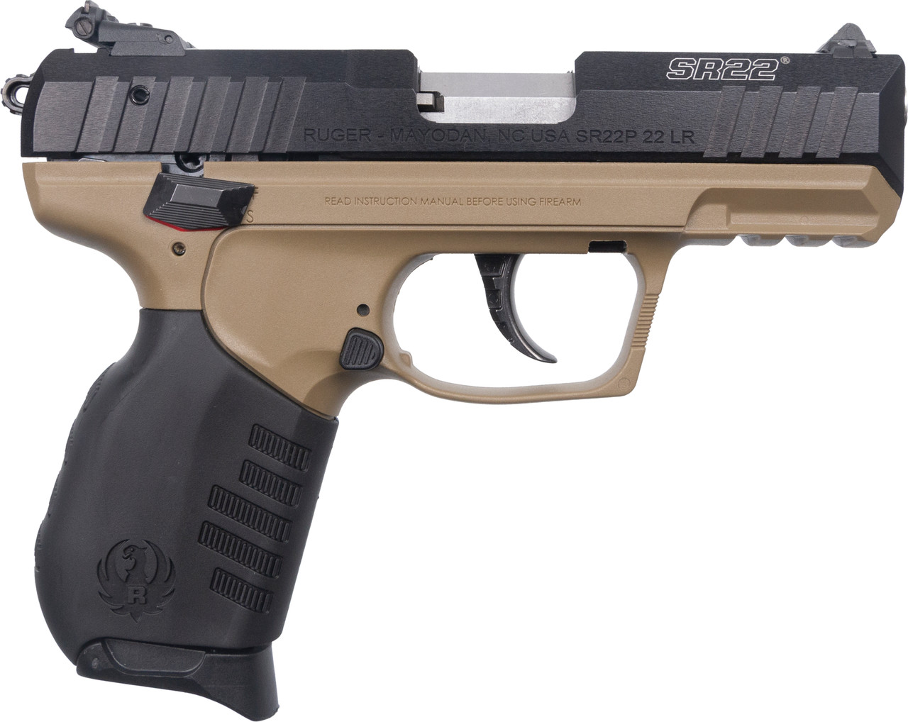 Light double-action and crisp single-action trigger pulls. External hammer is designed with a rounded spur for easy cocking and single-action shooting. Polymer frame and two interchangeable rubberized grips with angled serrations allow shooters to select either a slim or wider palm swell option (no tools required). The aerospace-grade aluminum slide has serrations on both the front and rear for better grip and slide manipulation. The dovetailed, high-visibility, three-dot sight system has a fixed front sight and a rear sight that is both windage- and elevation-adjustable. A reversible blade allows shooters to select two white dots or a solid black blade. The easy-to-use underside Picatinny rail features multiple cross slots for variable mounting of most popular accessories. Inspection port allows for visual confirmation of a loaded or empty chamber. Readily replaceable stainless steel barrel. Ambidextrous manual thumb safety/decocking lever and magazine release. Easy to field strip. Also includes: two, 10-round magazines; two finger grip extension floorplates.