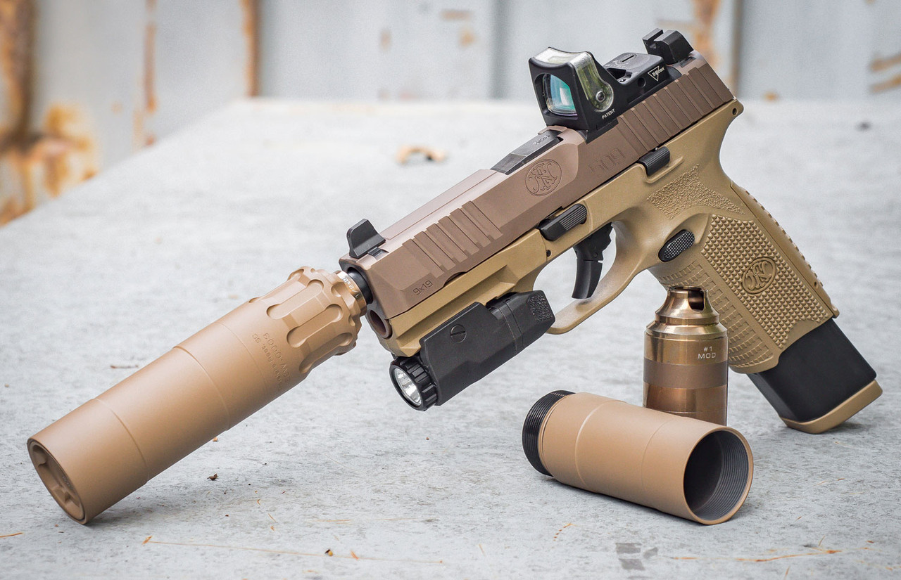 Rugged Suppressors Obsidian 9 with ADAPT Modular Technology, Pistol Suppressor, 9mm, Includes 1/2X28 Piston, Aluminium Tube, 17-4 PH Baffles, Flat Dark Earth Cerakote Finish