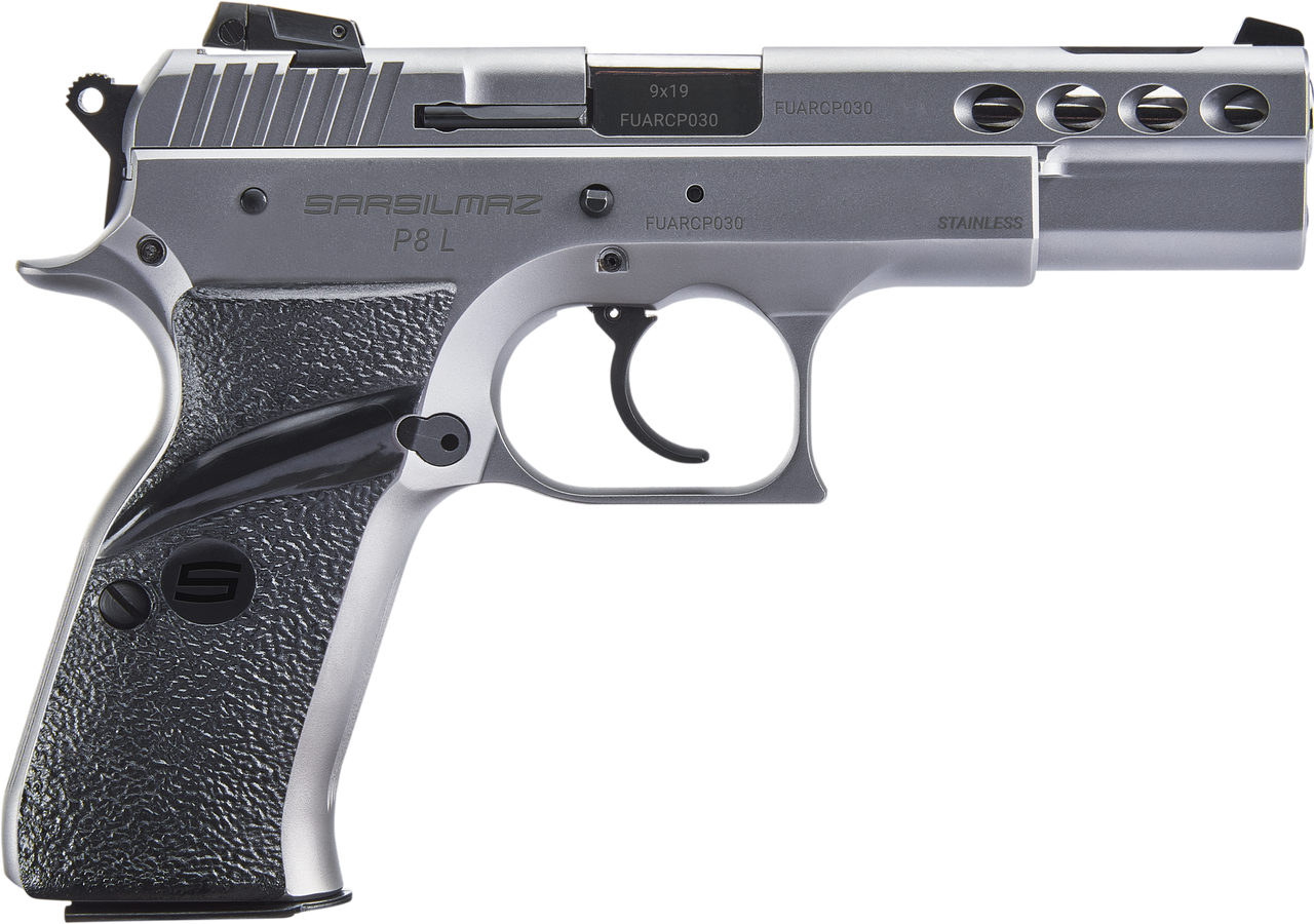 SAR USA P8L, Double Action/Single Action, Semi-automatic, Metal Frame Pistol, Full Size, 9mm, 4.6″ Ported Barrel, Alloy Steel, Stainless Finish, Low Profile Combat Sights, Manual Thumb Safety, 17 Rounds, 2 Magazines