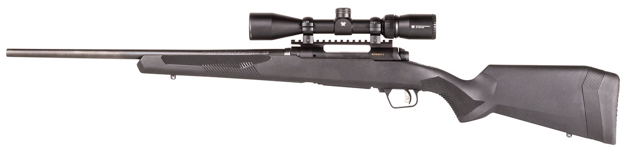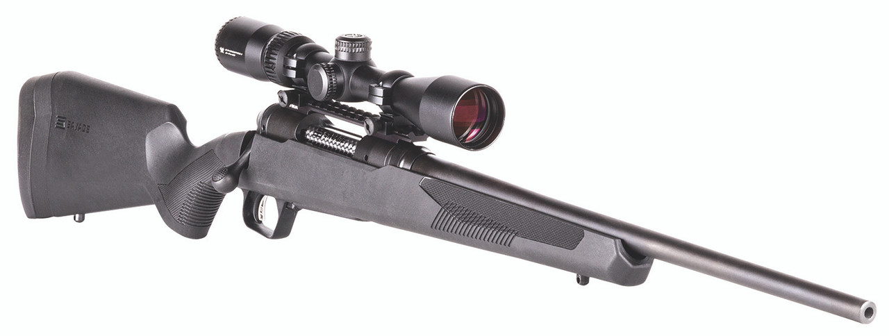 The complete package is finally here. The Apex Hunter XP pairs a Model 110 rifle with a 3-9x40mm Vortex Crossfire II scope that comes mounted, bore-sighted and ready to hunt. The platform provides accuracy and adjustability like no other package rifle thanks to the Savage AccuTrigger, thread-in heasdpacing, floating bolt head and precision button-rifled barrel. Plus, its length-of-pull can be easily adjusted to fit any hunter for better comfort and consistency.