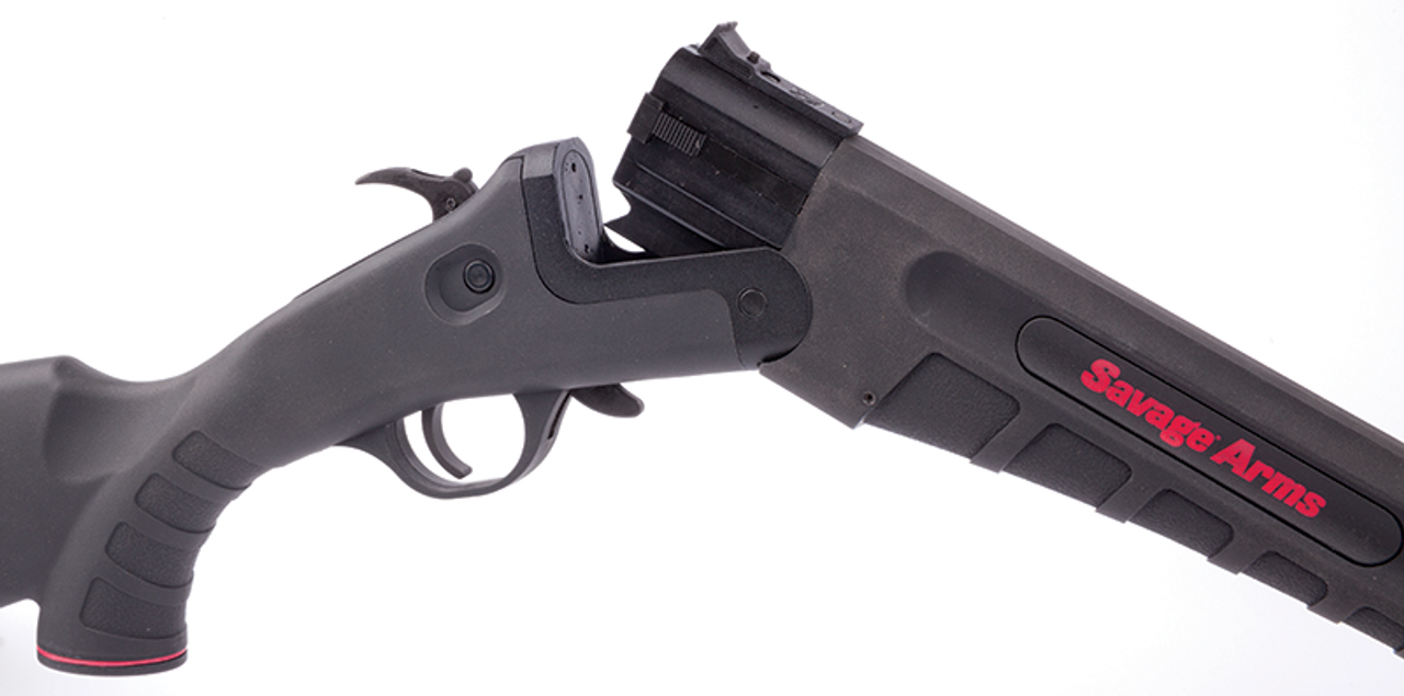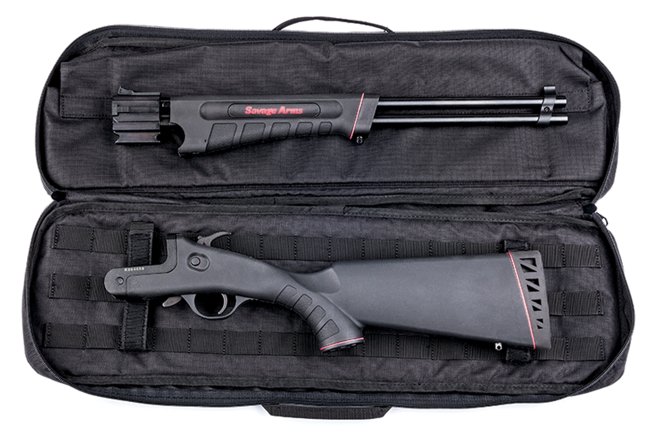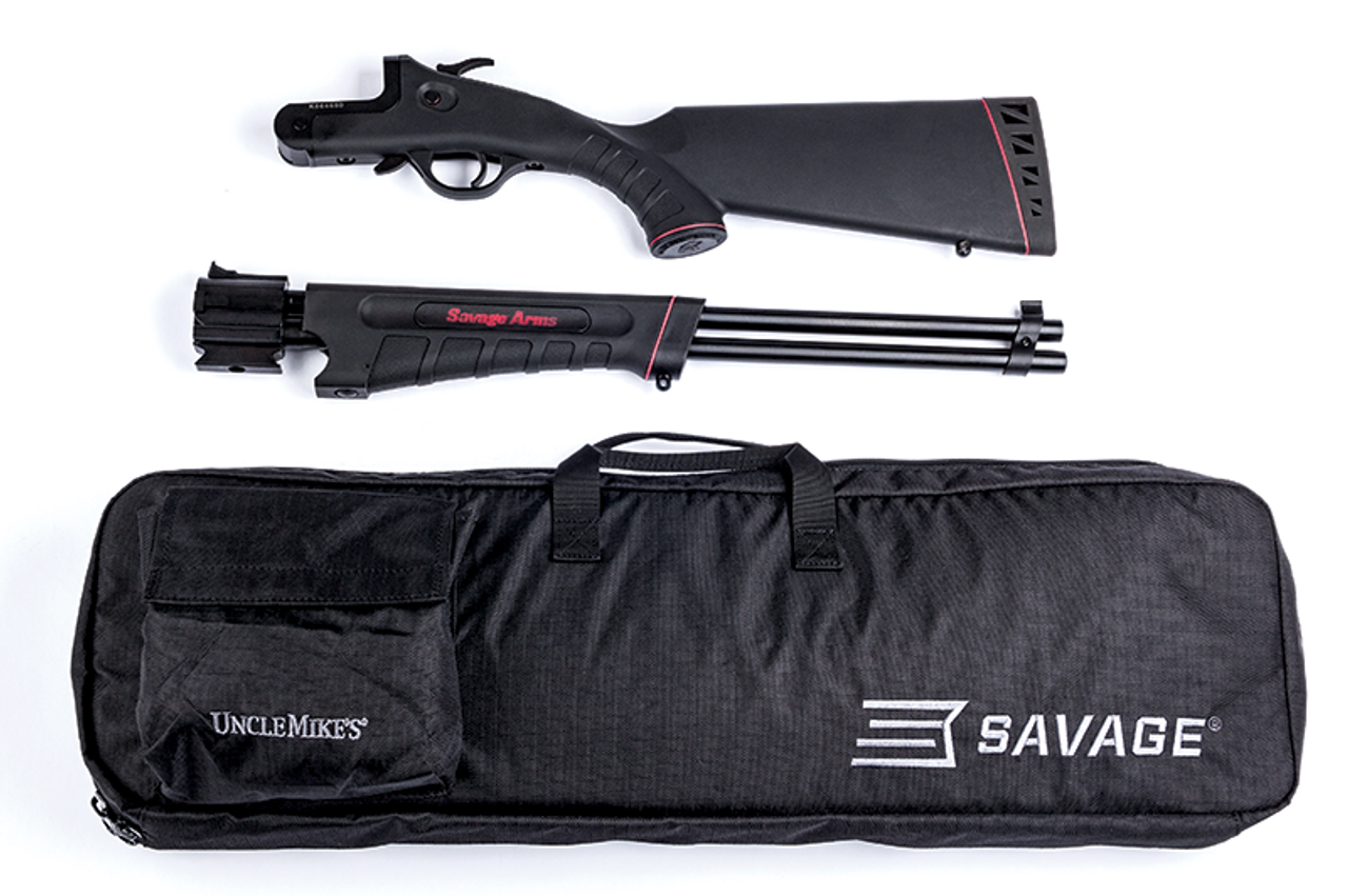 Versatility, simplicity and a short length-of-pull make Savage’s Model 42 Takedown Compact rifle/shotgun combo a must-have for smaller-framed shooters. The break-action over/under fires 22LR rounds from the top barrel and .410 bore shotgun shells from the bottom. The firearm breaks down with simple push of one button. It has 20″ carbon steel barrels, adjustable sights, and a sleek black finish on the metal and the synthetic stock. It includes an Uncle Mike’s Go Bag for easy transport.