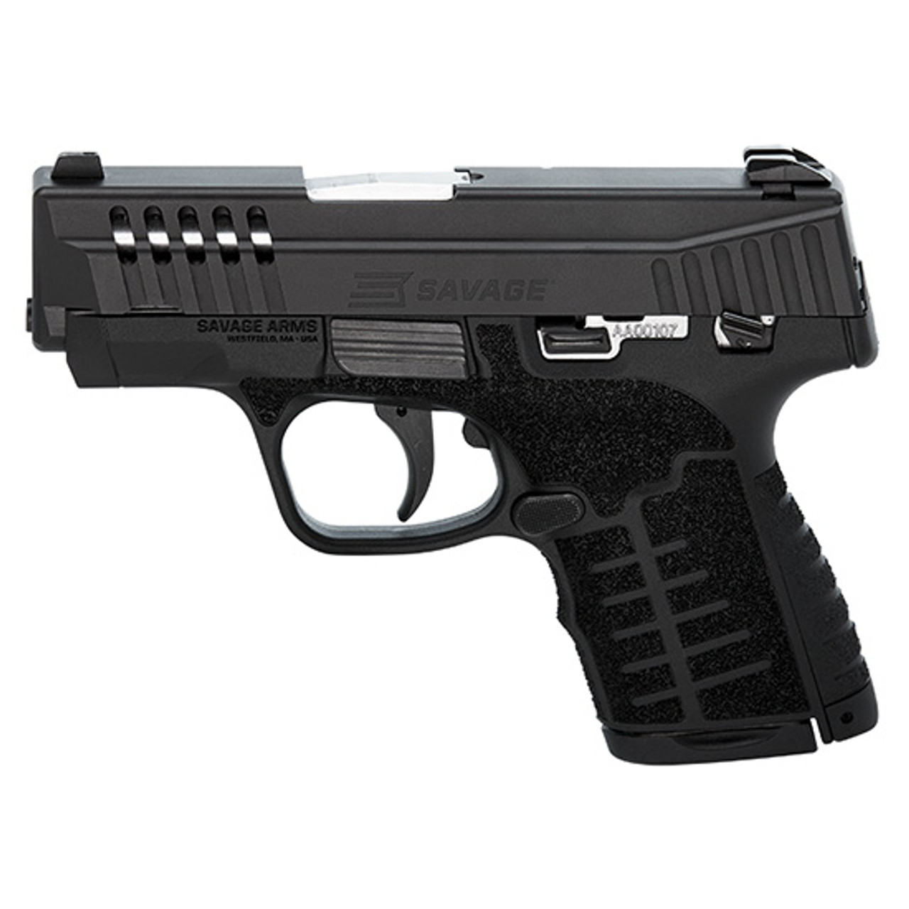 Savage Stance MC9MS 9mm, 3.2″ Stainless Steel Barrel, Melonite Finish, Black, Manual Thumb Safety, 3 Dot Sights, 8 Rounds, 2 Magazines, (1)-8 Rounds and (1)-7 Rounds, Includes Two 18 Degree Ba