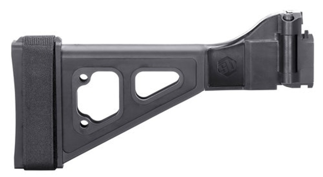 SB Tactical’s SBT-EVO Pistol Stabilizing Brace was developed in conjunction with B&T USA and designed after the iconic B&T stock for HK platforms. It features an integral, side-folding mechanism, and an adjustable nylon strap.