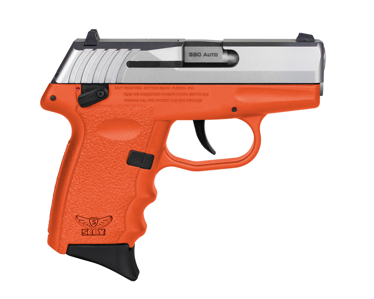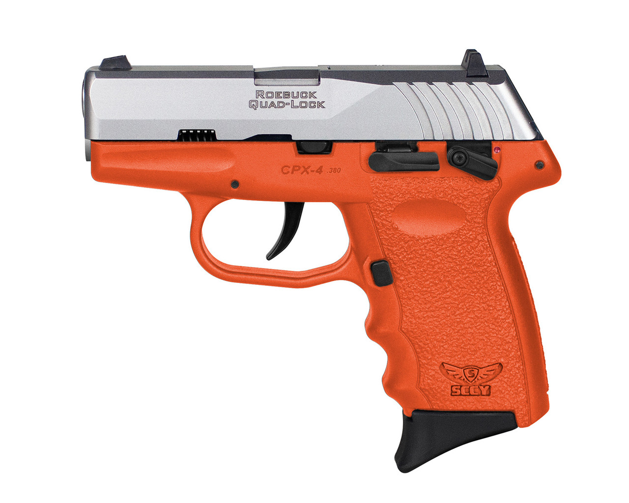 SCCY Industries CPX-4 .380 ACP, 2.96″ Barrel, Orange Frame, Stainless Steel Slide, Manual Thumb Safety, 10rd