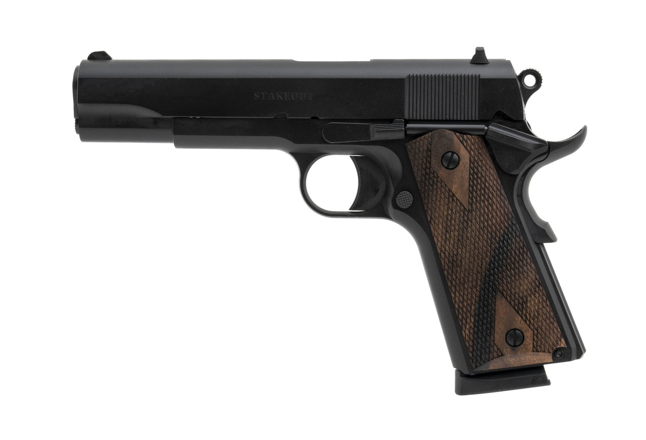 The 1911 Stakeout 45 takes features from our popular Duty and Tank Commander models to give a touch of modern and military ruggedness. The sleek design is meant to be snag-free with the enhanced A1 style sights, A1 service safety, and rounded spur hammer. We added an extended beavertail grip safety to give shooter the ability to get a high grip and save them from hammer-bite. Tisas Modern Series 1911 pistols come standard with our premium lockable hard case, two magazines, cleaning kit, bushing wrench, trigger lock and instruction manual.