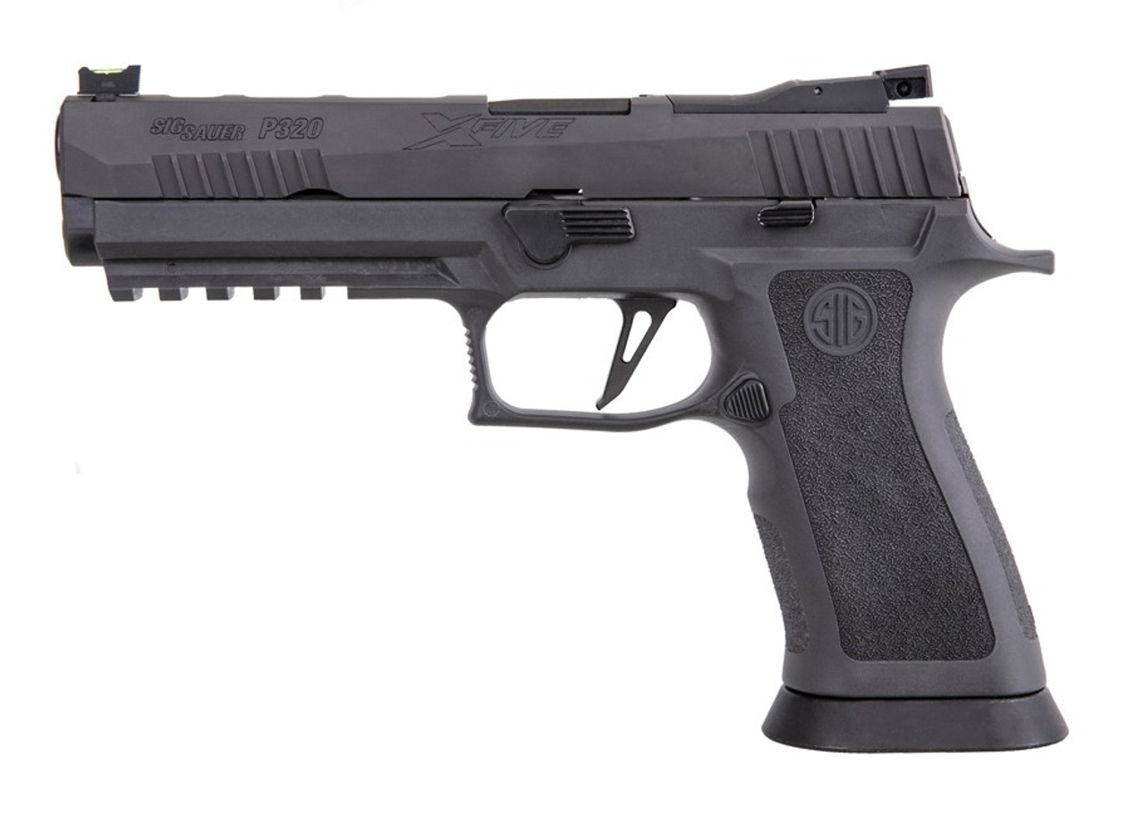 The P320 XFIVE Legion is the ultimate handgun for the serious shooter. The weight was increased to 43.5oz thanks to the innovative TXG tungsten-infused grip module. This new product is the first of its kind in the firearms industry with the weight of steel and the flex of polymer, reducing muzzle flip by up to 50%. The trigger pull of the XFIVE Legion is up to 30% lighter with the new skeletonized trigger, which increases shooting speed and accuracy. The recoil system has been upgraded to use a solid steel guide rod and a 14lb 1911-style spring, with an additional 12lb spring included. The signature Legion Gray finish comes standard, as well as Legion markings on the sight plate and on all three of the Henning Group® anodized aluminum basepads. All of these new features coupled with the removable magwell & grip weight, Romeo1PRO optic-ready slide, 5” bull barrel, and Dawson Precision® fiber optic adjustable sights catapults the P320 XFIVE Legion ahead of the competition and sets a new standard for all pistols.