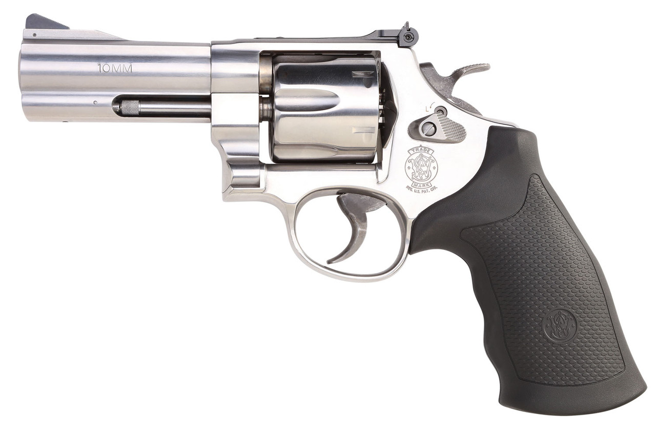 The Smith & Wesson Model 610 10MM is a stainless steel large N-Frame revolver. It is ideally suited for personal protection or handgun hunting with the popular 10MM auto cartridge. Three moon clips are included.