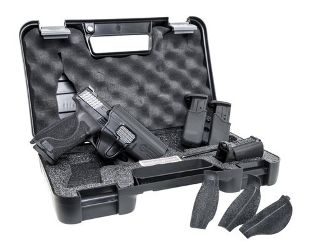 This Carry and Range Kit includes a Caldwell Tac Ops holster and double magazine pouch, Maglula Uplula speed loader, four (4) interchangeable backstraps, and three (3) 15-round magazines.