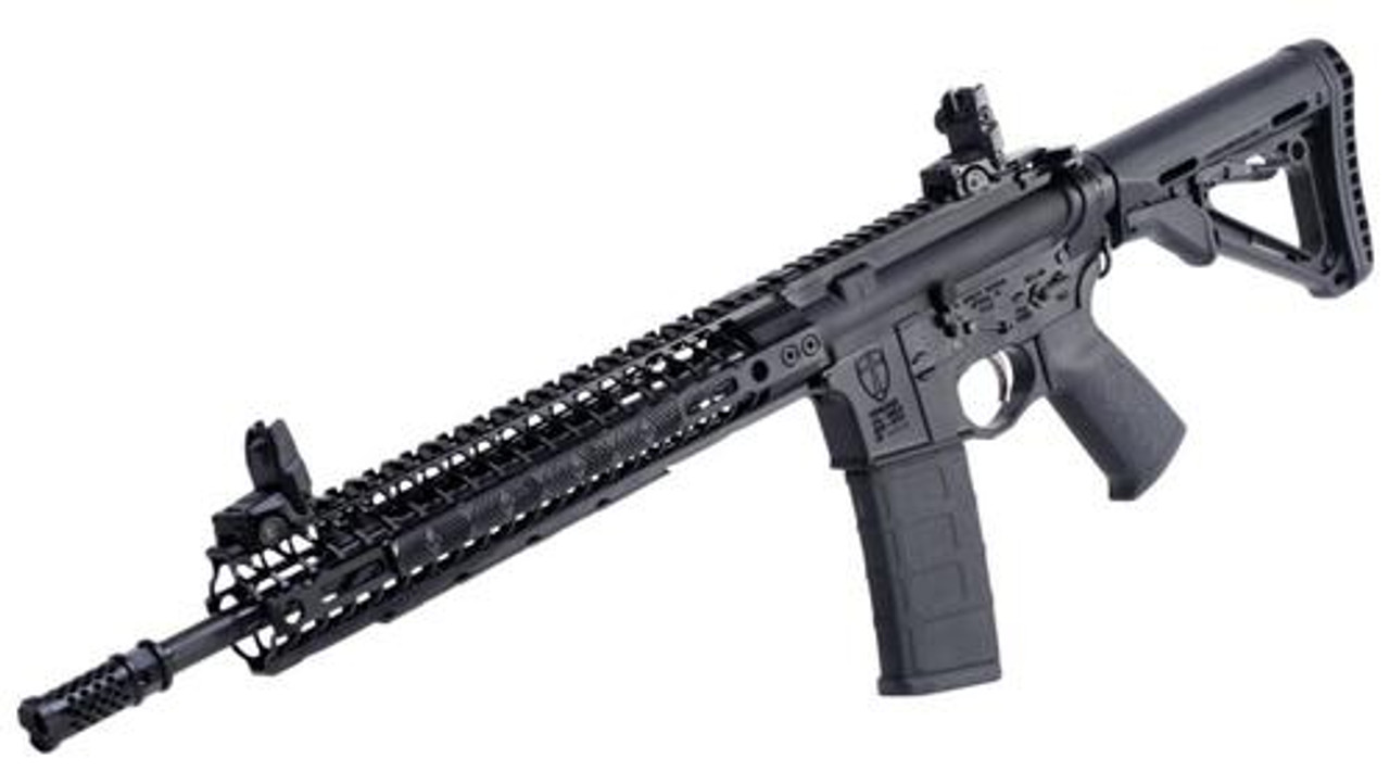 Spike’s Tactical Crusader is a Lightweight Mid-Length Rifle. This rifle contains a selection of the finest components and at its core is the ST Crusader lower with Integral trigger guard. Its mid-length CMV barrel with ST Dynacomp 2 pinned and welded for compliance makes for a very smooth shooting rifle with extremely fast follow up shots due to reduced recoil and overall balance of the rifle is perfect. Included features are an enhanced lower parts kit with the ST Battle Trigger, ST Billet Latch Plate, KNS Anti-Rotational Hammer and Trigger Pins, ST Ambi Safety Selector, Billet Mag Release Button and Pro Grip. The combination of Lightweight NIB BCG and Spike’s ST-T2 Tungsten buffer completes the package and makes for an extremely smooth shooting rifle. On the forend is an ST-12 MLOK rail system.