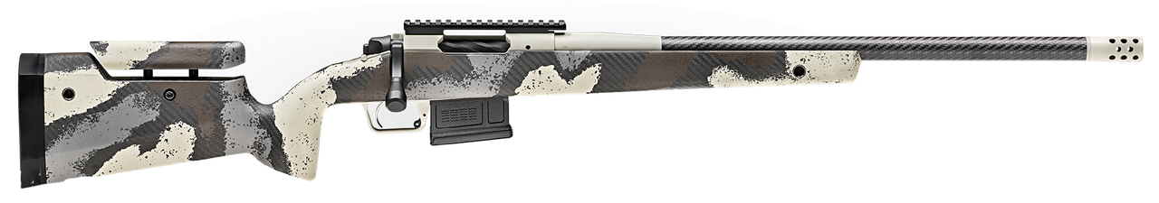 Springfield Model 2020 Waypoint 6.5MM Creedmoor, 22″ Carbon Fiber Barrel, SA Radial Brake, Tan, Desert Verde Cerakote, Ridgeline Camo Adj Carbon Fiber Stock M-LOK, TriggerTech Adj Trigger, AICS 5rd Mag