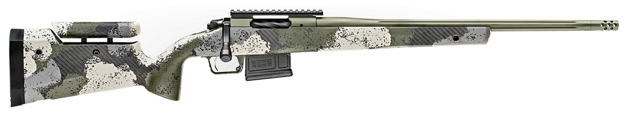Springfield Model 2020 Waypoint 6MM Creedmoor, 20″ Fluted Stainless Barrel, SA Radial Brake, Green, Mil-Spec Green Cerakote, Evergreen Camo Adj Carbon Fiber Stock M-LOK, TriggerTech Adj Trigger, AICS 5rd Mag