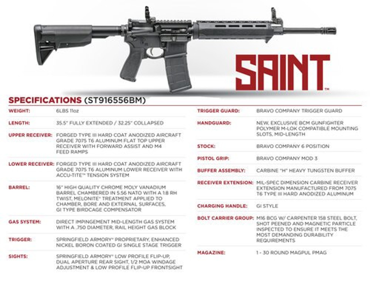 Springfield Saint 5.56mm, 16″ Barrel, M-LOK, Bravo 6-Position Stock, 30rd