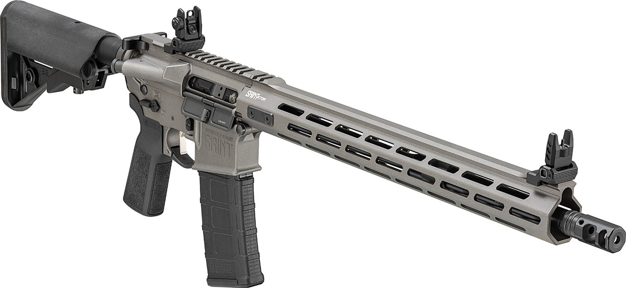 This is the SAINT® for the rugged individualist who appreciates the classics. The lightweight mid-length direct gas impingement operating system offers superlative reliability. Top-end B5 Systems furniture combines comfort with ample M-Lok® space so you can customize your SAINT to fit your unique personality. The traditional front sight base is both unbreakable and foolproof. A 16″ chrome moly vanadium Melonite-coated 1:8″-twist barrel strikes the perfect balance between compact portability and rugged performance.