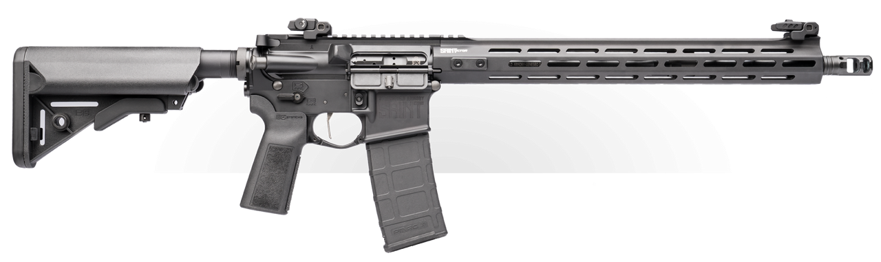 The SAINT Victor 5.56 takes the already superb SAINT rifle and amps up the features. The full-length 15″ aluminum handguard has ample M-Lok real estate for accessories and reaches out far enough to accommodate modern shooting styles. The mid-length gas system ensures reliable operation, smooth function and long life, while the flat trigger face lends itself to serious precision. Nickel boron fire controls help you put rounds on target every time, and B5 Systems furniture rounds out the package.