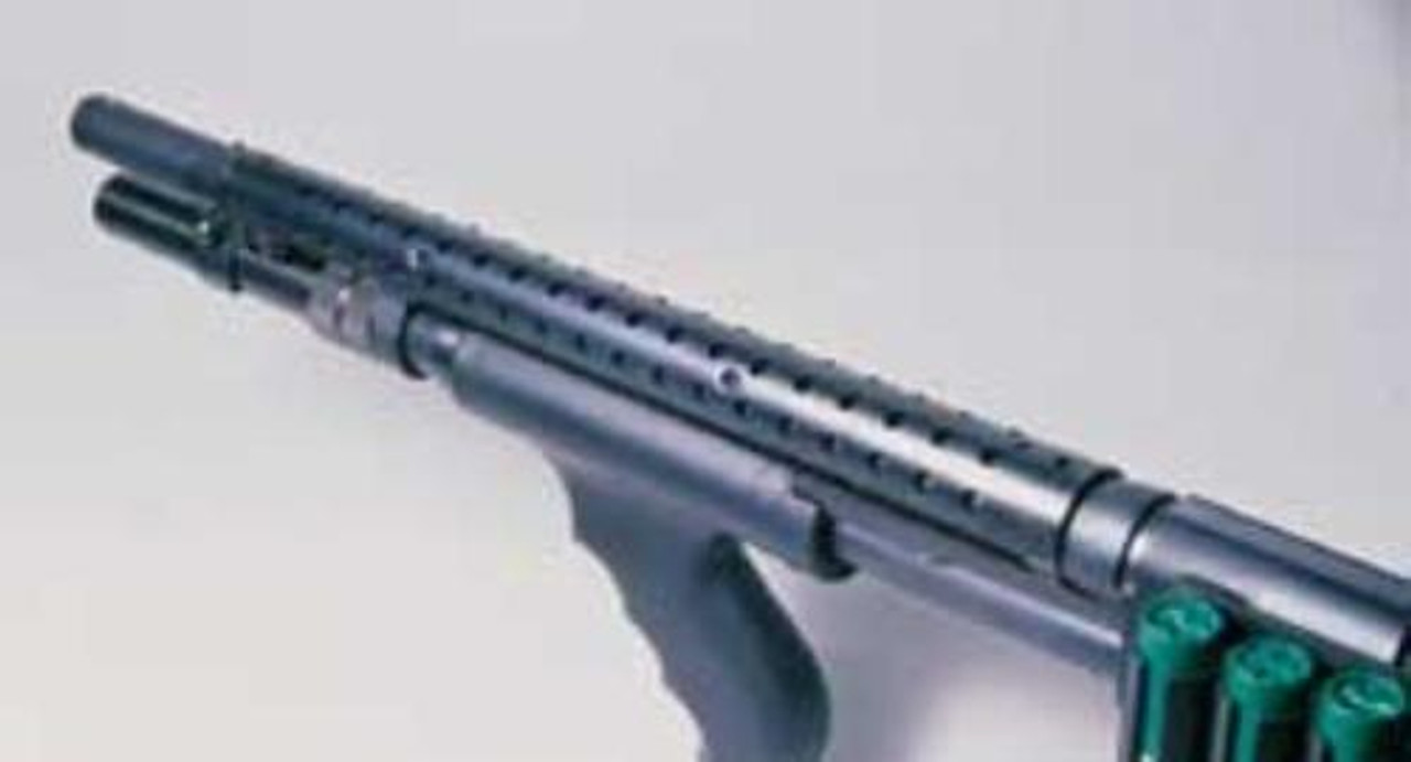13¾” in length and designed with a circular friction-fit bracket at the rear and a locking clamp at the front for a recoil resistant fit on the barrel.