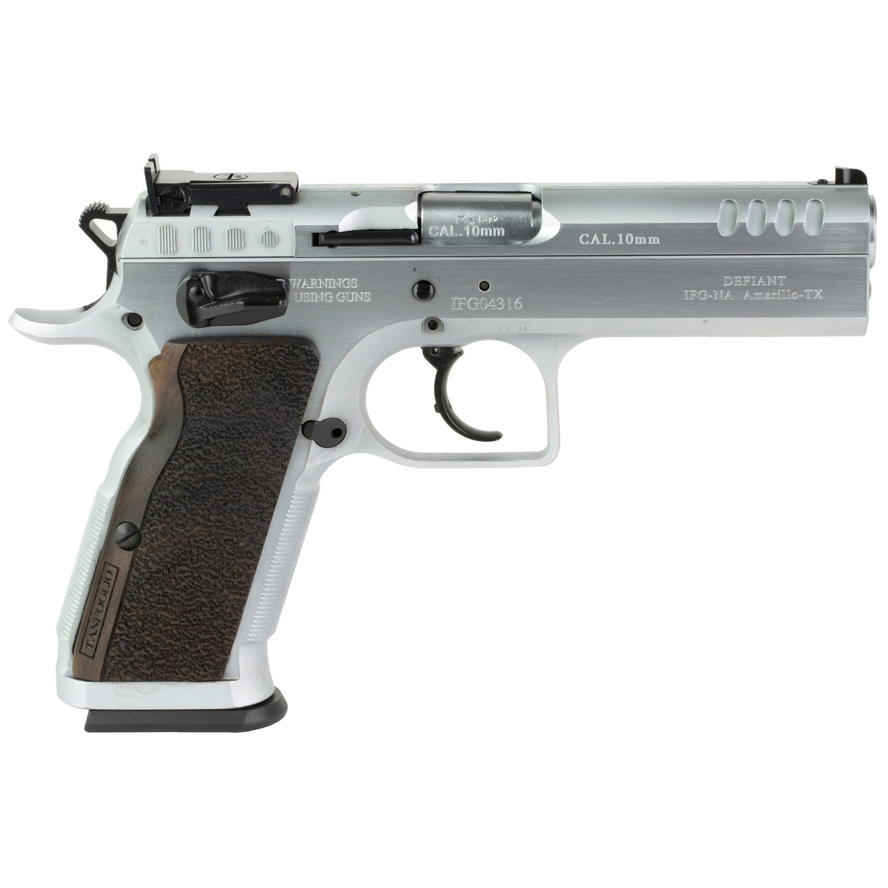 The Tanfoglio Stock II is a popular competition handgun with a sleek design and impressive features. It is made by Italian gun manufacturer Tanfoglio, which has been producing firearms for over 50 years. The Stock II is specifically designed for IPSC and USPSA competition shooting, with a number of features that make it a top choice for serious competitors. The gun features a full-length dust cover to help reduce recoil, as well as an extended beavertail and ergonomic grips for added comfort and control. The Stock II also has a large capacity magazine, holding up to 17 rounds of 9mm ammunition.