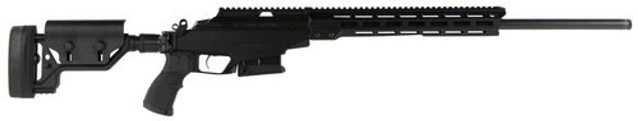 Tikka’s T3x TAC A1 is the ultimate tool for long range accuracy. Its meets the toughest military and LE specifications with a modular chassis built to meet MIL/LE specifications, AR stock, grip, and forend interface. The rigid forend has optimal wall thickness to prevent bending and an optic-ready, 13.5″ M-LOK configuration. The rear stock has a machined aluminum frame with a soft, height-adjustable recoil pad; adjustable cheekpiece with adjustable angle; LOP spacers with inclination; Picatinny attachment for a monopod, and a QD rear mount. The modular chassis is full aluminum bedded. The TAC A1 utilizes a double stage trigger and adjustable weight of pull.