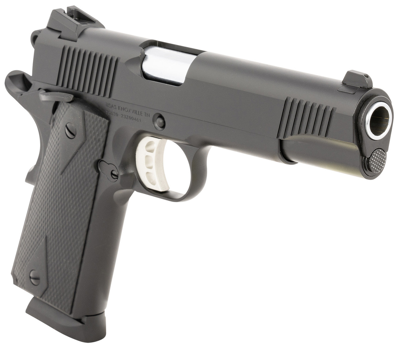 Tisas 1911 Duty pistol is a modernized version of the venerable 1911 pistol. The pistol features a hammer forged slide with front and rear slide serrations; hammer forged, steel full-size frame; flared and lowered ejection port; skeletonized hammer and trigger; ambidextrous extended safety; 3-Dot Low-Profile Sights, Novak Style Cut and Series 70 Internals. Includes two magazines, cleaning kit, owners manual, waterproof and lockable hard case w/fitted cut foam insert.