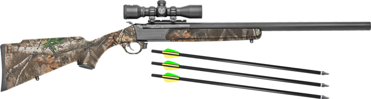 The patented Crackshot XBR package comes with the Crackshot single shot rifle in .22 cal with a 16.5 barrel. This gun is lightweight, easy to carry, and perfect for small game hunting. Additionally, you get the XBR upper that you can swap onto your Crackshot rifle. With a 20″ barrel, the XBR allows you to shoot an arrow out of your Crackshot rifle and changes your platform into a whole other gun. The XBR has an inner barrel that allows you to slide the hollow end of a Traditions Firebolt Arrow over this inner barrel until it reaches the end of the barrel. The inner barrel is protected by an outer shroud which also protects the shooter. Keeping the gun pointed down range, simply load your arrow, break open the action, and put in a Traditions XBR Powerload. QD Quiver & Traditions XBR Powerloads NOT Included