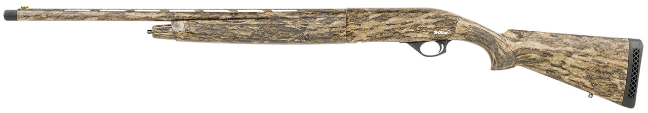 The TriStar Viper series is a semi-automatic, gas operated shotgun that is reliable, functional and hard working. Its removable choke system uses Beretta/Benelli Mobil threads, includes three choke tubes (IC, M, F), choke box, and wrench. The Viper also features manual E-Z load mag cut-off, vent ribbed barrel with matted sight plane & fiber optic front sight and chrome-plated chamber. A shot plug is included. This 20 gauge G2 Turkey model features a bronze metal finish and Mossy Oak Bottomland fixed stock with pistol grip.