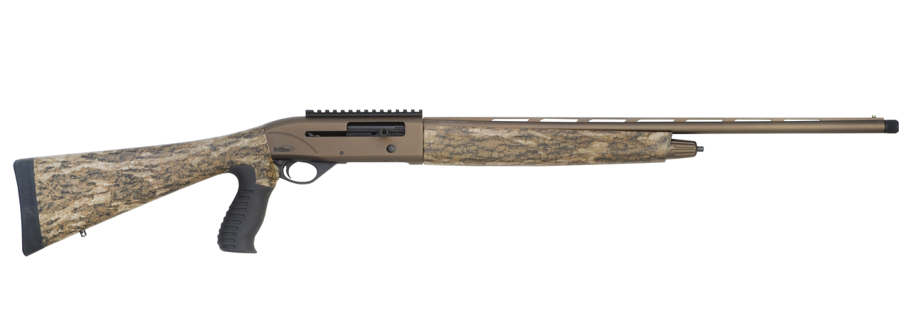 The TriStar Viper series is a semi-automatic, gas operated shotgun that is reliable, functional and hard working. Its removable choke system uses Beretta/Benelli Mobil threads, includes three choke tubes (IC, M, F), choke box, and wrench. The Viper also features manual E-Z load mag cut-off, vent ribbed barrel with matted sight plane & fiber optic front sight and chrome-plated chamber. A shot plug is included.This 410 gauge G2 Turkey model features a bronze metal finish and Mossy Oak Bottomland fixed stock with pistol grip.