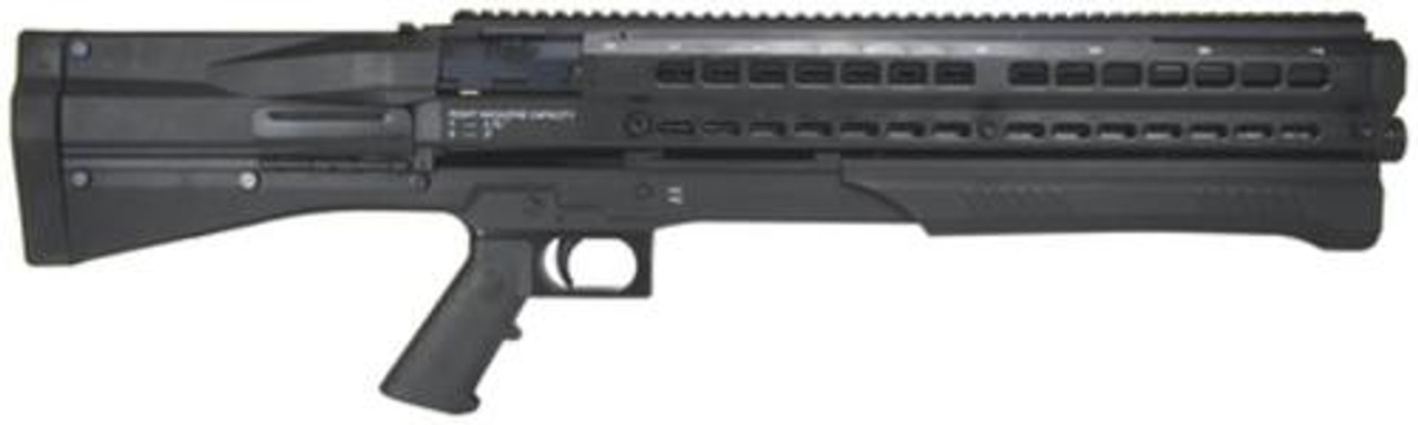 Dual tube magazines with a maximum of a nine round capacity. Automatic alternating or selectable feed, snap open loading ports and retractable magazine followers. Integrated top mounted picatinny rail for sights or optics. Polymer receiver with integrated spring loaded shell feeding device. Spring assisted pin ejector. Fiber reinforced slip-up stock/shell funnel. Fiber reinforced butt plate with one inch recoil pad. 4140 steel bolt body, precision machined and heat treated 4140 steel rotary bolt head with three locking lugs. Quick detach sling swivel mounting points. No tools required for field stripping in 60 seconds. Chambered to accept 2.5, 2.75 or 3 inch ammunition.
