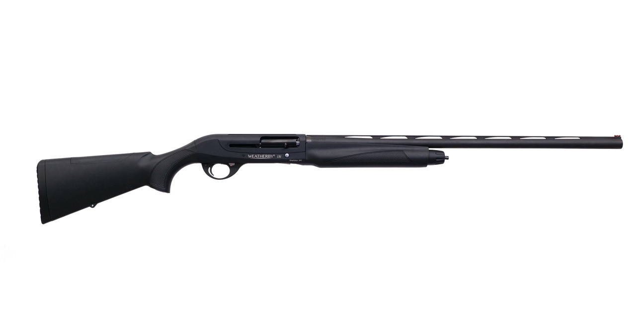 The Weatherby 18i series of semi-automatic shotguns are built on the proven inertia system, that provides reliable cycling on an evenly-weighted gun. Designed and built for shooters that require superior reliability with high volume shooting, the single piece receiver is precision machined from billet aluminum for strength and simplicity. The premium engineering and material composition will provide consistent performance in the harshest of environments. The safety is conveniently located behind the trigger with a positive red ring for visible confirmation when in the “ready to shoot” position. Five choke tubes and a true choke tube wrench are all included and contained in a small plastic case.