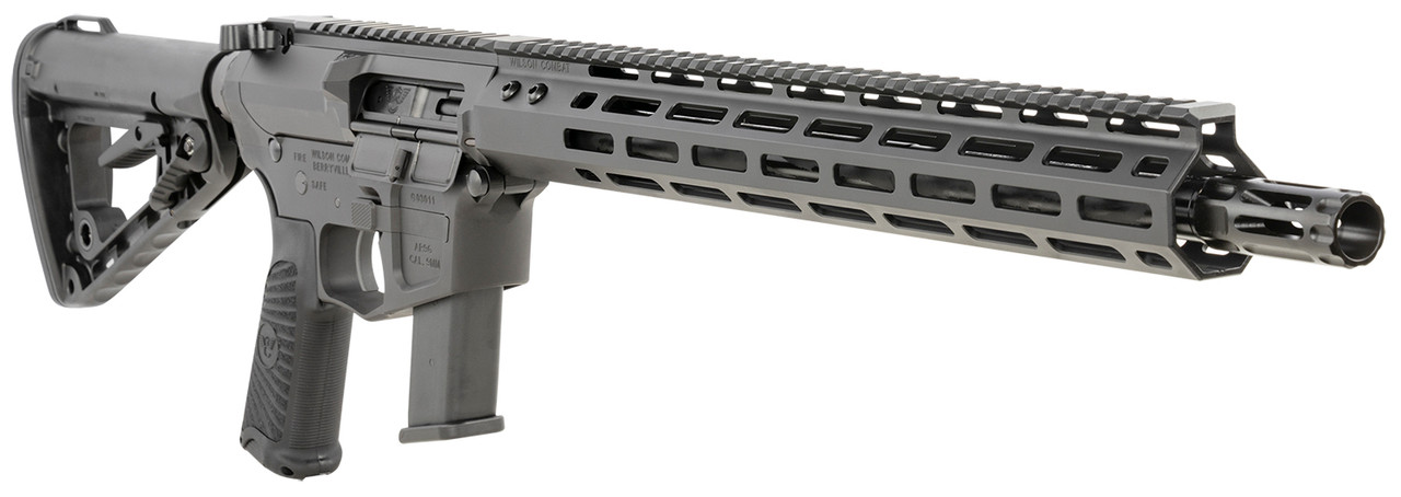 The Wilson Combat AR9 has been specifically designed for superior reliability and maximum accuracy, while retaining the familiar handling and controls of the AR platform. Wilson Combat engineers have designed two unique AR9 lower receivers with last-round bolt hold open that are compatible with the most popular 9mm service pistol magazines from Glock. These new billet-machined aluminum receiver models also accept standard AR accessories like furniture, triggers, charging handles, buttstocks and optics, and incorporate an integral trigger guard and flared magwell for fast reloading. The Wilson Combat AR9 closed-bolt blowback operating system is soft shooting and reliable with a wide variety of 9mm loads and exhibits flawless feeding with all common pistol bullet shapes, including hollowpoint and +P tactical ammunition. The AR9 is also an optimized suppressor host with minimal gas blowback and enhanced accuracy over other designs. Wilson Combat carbon steel match-grade button-rifled 1-10 twist 9mm barrels ensure that the AR9 meets our stringent quality and accuracy requirements.
