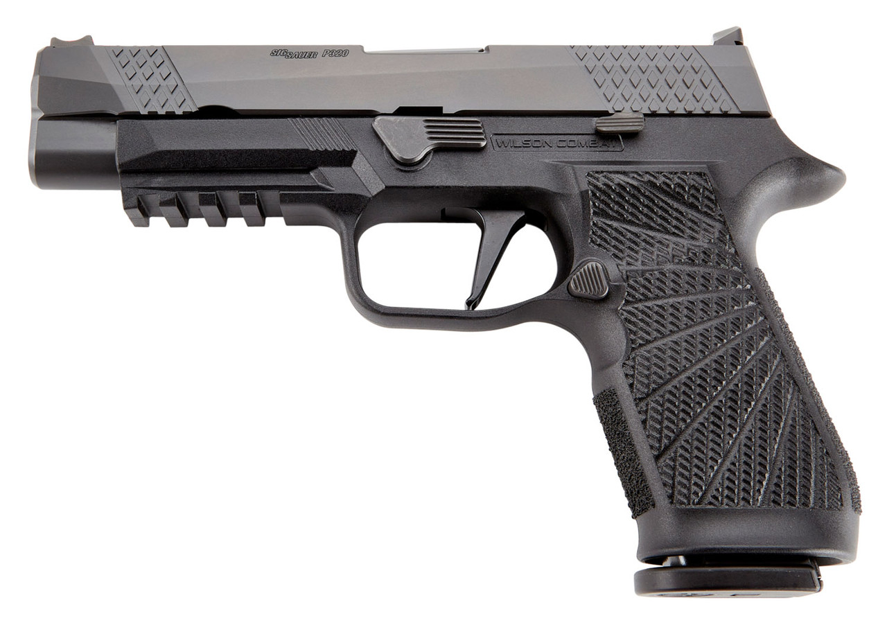 Wilson Combat and SIG SAUER are pleased to announce the availability of a Wilson Combat enhanced P320 9mm semi-automatic pistol collaboration, the WCP320. Using the Wilson Combat SIG P320 grip module, our in-house re-machined slide and Wilson Combat performance battlesights, the Wilson Combat Optimized WCP320 is tailored for precision tactical pistol shooting. Featuring the Wilson Combat polymer grip module; the slide has been machined with the Wilson Combat X-TAC pattern for improved manipulation under stress. The front and rear cocking serrations, as well as the slide top, wear this signature Wilson Combat pattern with the Wilson Combat logo on the slide. The stainless steel slide and chromoly barrel wear the most advanced black DLC (Diamond-Like-Carbon) physical vapor deposition finish; The SIG SAUER flat-faced XFULL trigger is standard on the WCP320 and gives shooters a lower finger position on the trigger which increases leverage for a lighter, smoother trigger pull and Wilson Combat Battlesight with red fiber optic front sight. Includes two 17rd X-Series magazines.