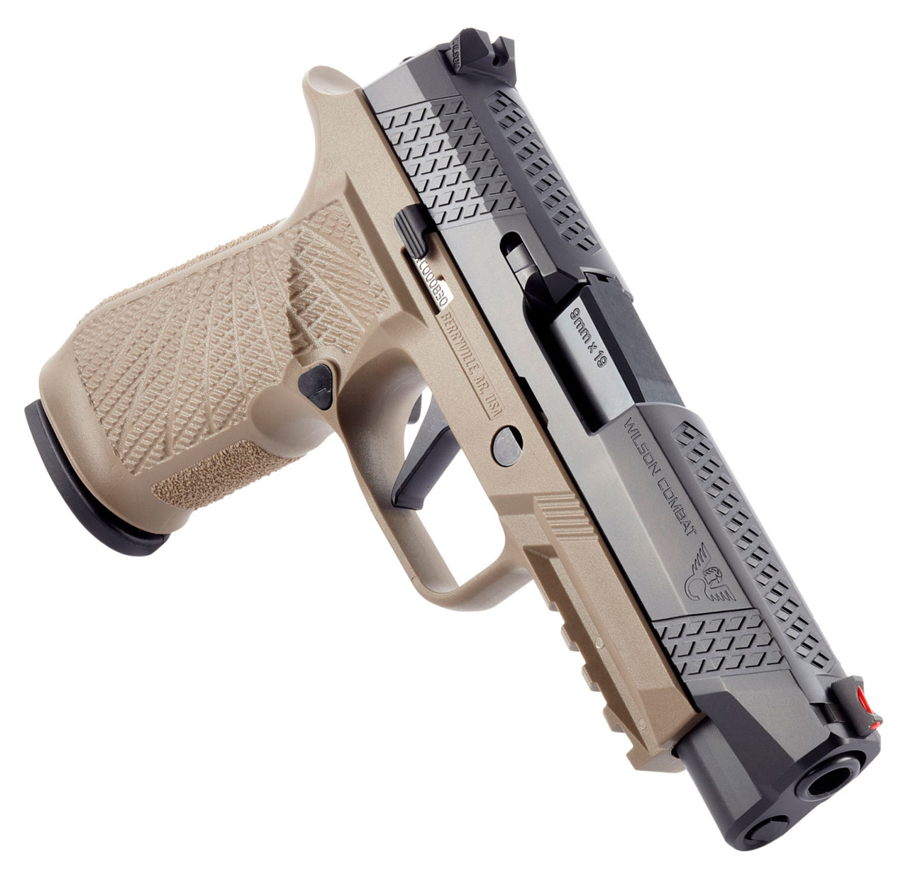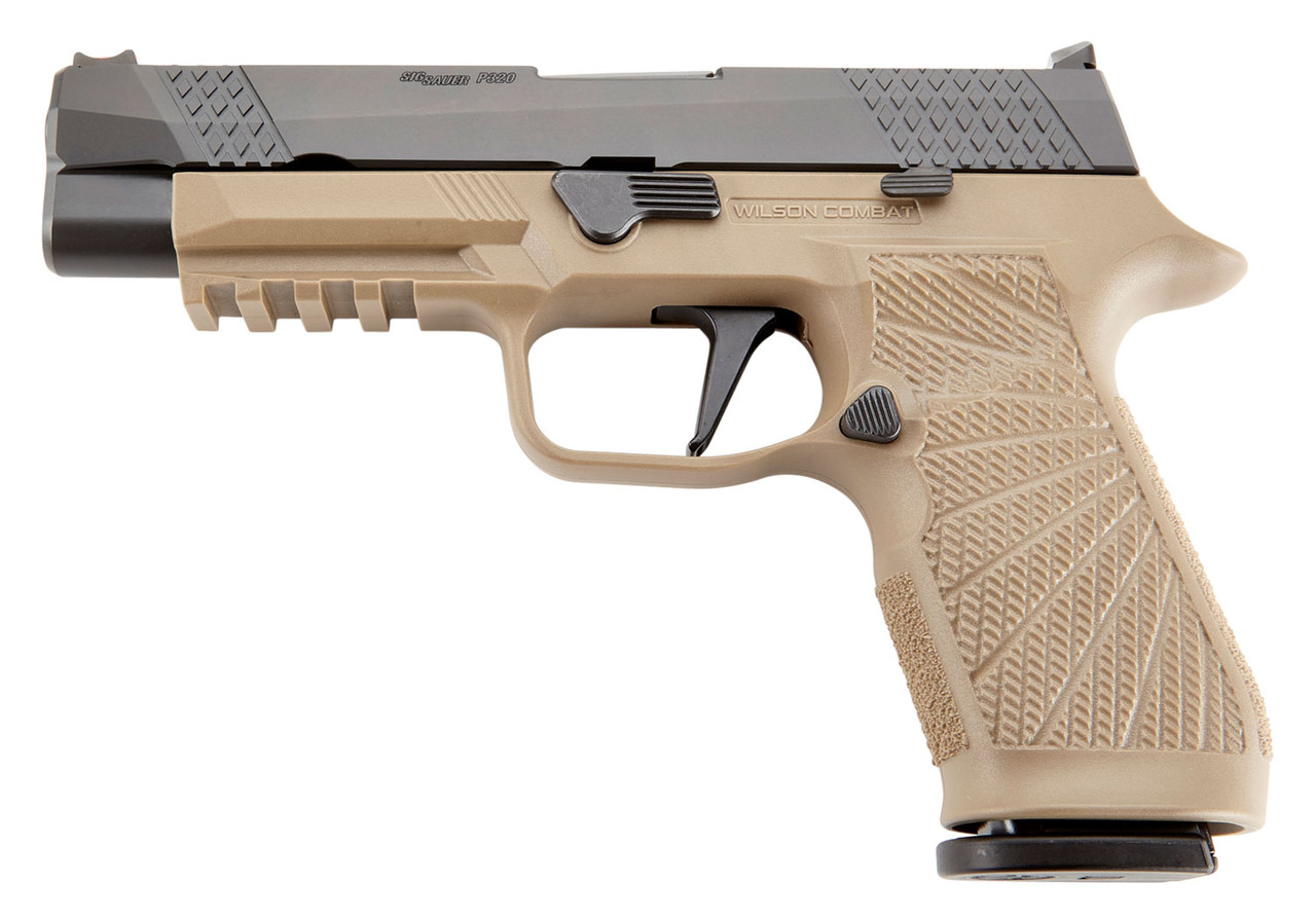 Wilson Combat WCP320 Whistle Tip Sig P320 9mm, 4.7″ Barrel, Black, Tan, Custom Gun Armor, Fiber Optic Front Sight, 2x17rd Mags