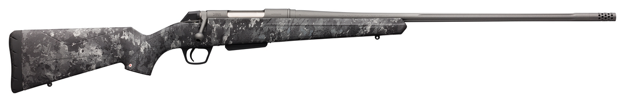 The Winchester XPR is an innovative rifle that meets the performance expectations of today’s demanding hunters. It’s a rugged, no nonsense game-getter that will put meat in your freezer for many years to come. Most of all, the feature-packed XPR bolt-action rifle embodies the lasting quality you’ve come to expect from Winchester Repeating Arms. Winchester’s M.O.A. Trigger System is the heart of every XPR rifle. The trigger housing and all internal components in the M.O.A trigger are constructed of polished and hardened carbon steel with a blued finish for added durability and corrosion resistance. It also has a two-position safety that’s convenient to operate with the thumb of your firing hand. Located just in front of the safety button, the bolt release button allows the action to cycle unfired cartridges while the safety is on. The cocking indicator on the bolt shroud gives you both a tactile and visual reference of the rifle’s cocked/uncocked condition. The robust XPR bolt is crafted from chromoly steel barstock and is through-hardened during heat-treatment. The bolt design offers three front locking lugs and a short 60-degree lift for improved scope clearance when cycling. A tough nickel Teflon coating provides smooth operation and added corrosion resistance. The one-piece trigger guard and magazine frame design offers a generous guard opening for use with gloves. The chromoly steel barrel on the XPR rifle is precisely button-rifled to create outstanding accuracy with a wide variety of bullet weights and types. The entire barrel is free-floating to eliminate any accuracy robbing pressure points. The XPR also features a drilled & tapped chromoly steel receiver, synthetic stock with an Inflex Technology recoil pad, and a detachable single stack box magazine.